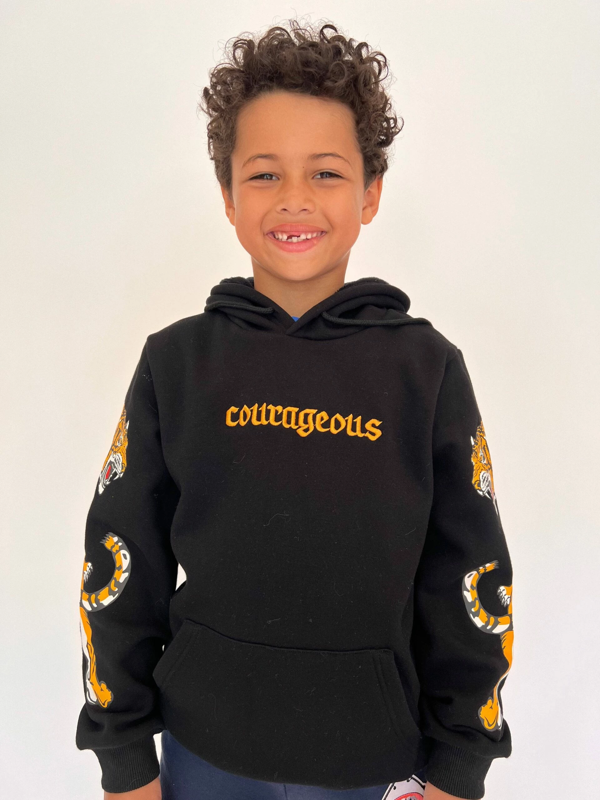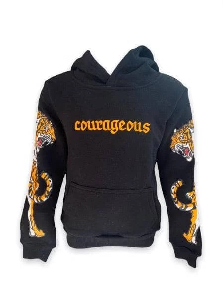 - Black hoodie with the word “Courageous” on the chest