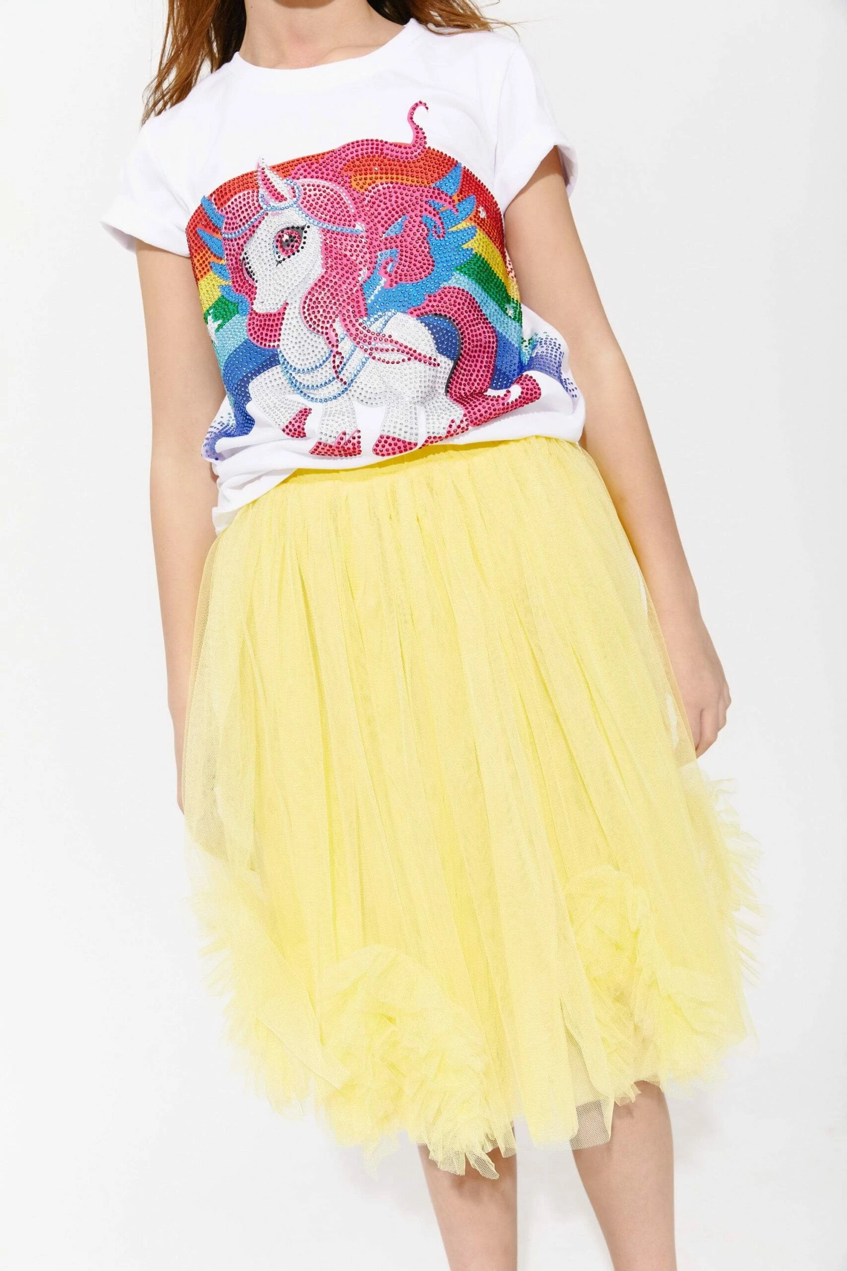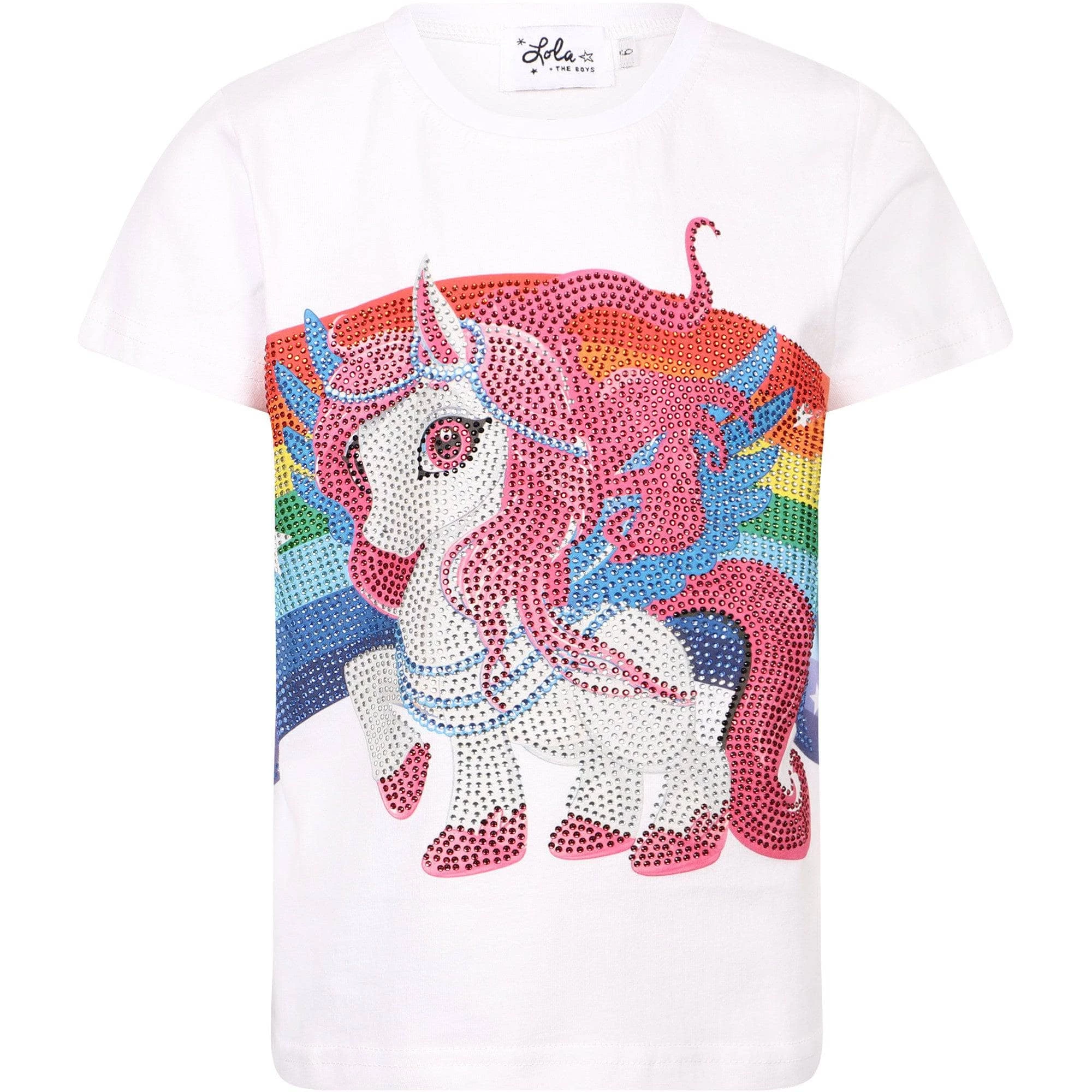 - White colorful unicorn design tee