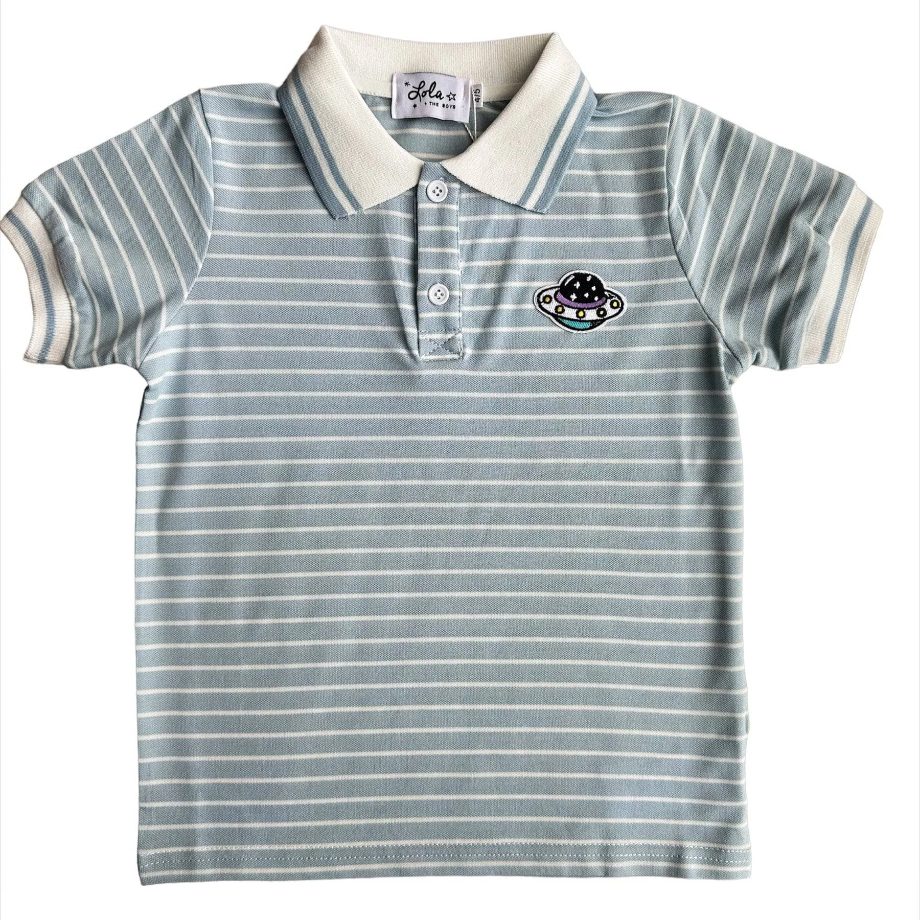 - Stripped baby blue and white polo