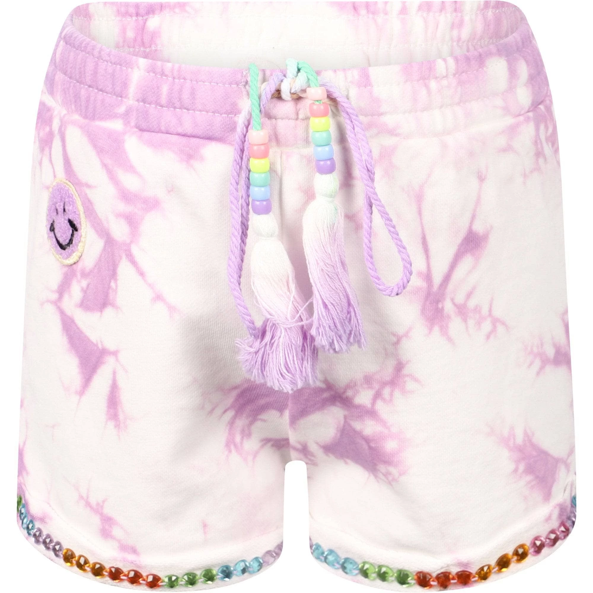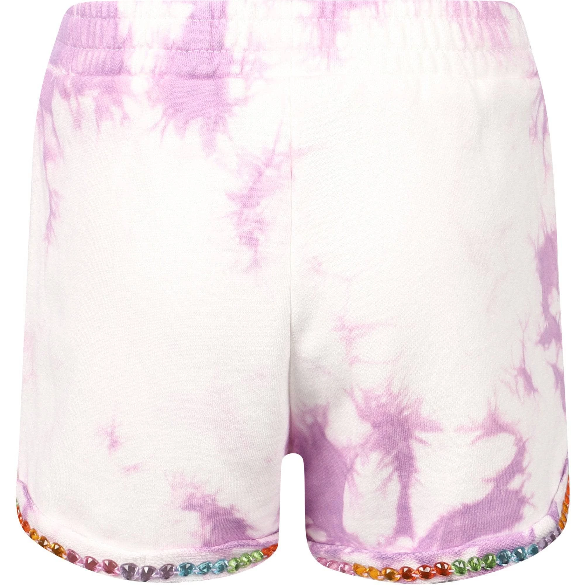 - Purple and white tie dye shorts