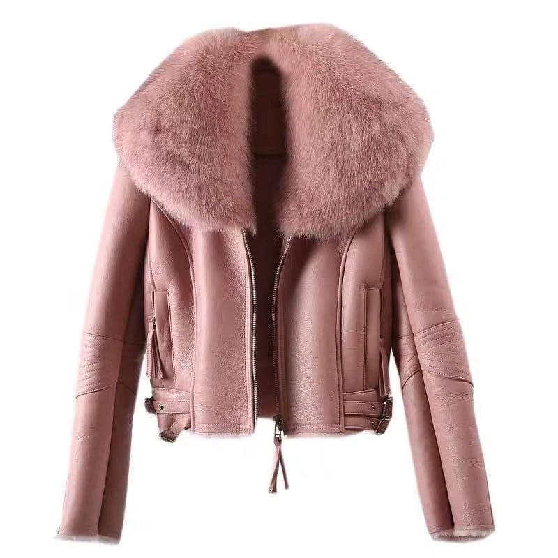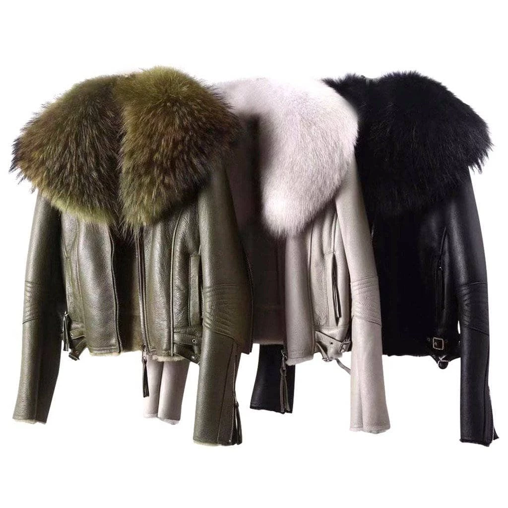 Real soft leather and lined sheerling faux fur! Fur faux fur collar. With zipper detailed sleeves.Â